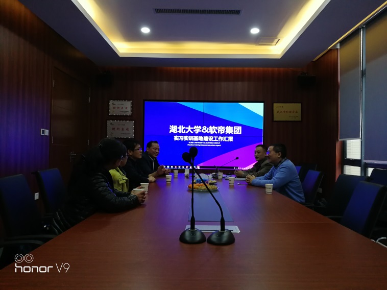 1月26日下午,校教务处副处长李其峰、海角天涯社区网页入口登录分管教学副院长付应雄,信息系主任李胜华等人前往武汉软帝集团参加了湖北大学-软帝集团实习实训基地建设研讨会。软帝集团董事长李杰、张总及孙总以及技术骨干柴老师出席了此次会议。
