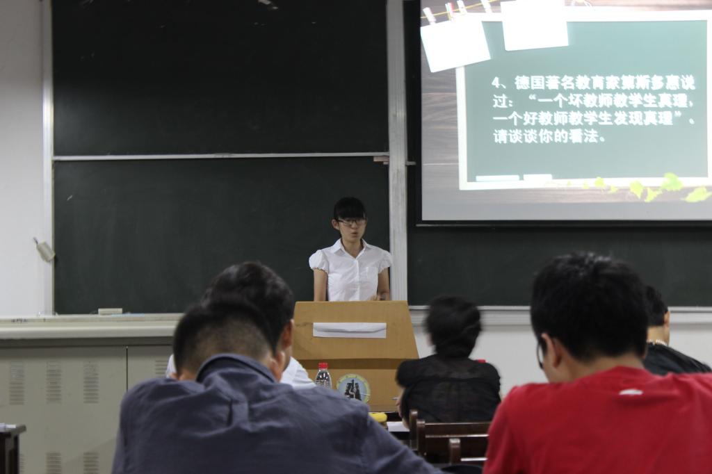 讲课比赛中,7位选手依托课件展示,结合板书内容,通过实例讲解,将枯燥的公式和理论转化为通俗易懂的内容。他们声情并茂,在讲解的同时还不时与台下的观众互动,调动起“模拟课堂”的课堂气氛。“这样讲课效率应该很高,能够使课堂不再死气沉沉,将单项的课堂传授模式变为交流模式,教师走入学生中间,从学生需求出发制定教学方式与内容,提高课堂教学质量。”现场聆听的一位师范生在观看和学习了参赛选手的讲课之后,表示学到了很多创新的讲课方式,受益匪浅。