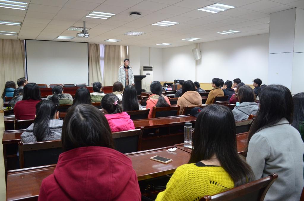 12月6日下午,学院邀请第七届湖北普通高校师范专业大学生教学技能竞赛评委老师肖燕和此次竞赛省一等奖获得者郭淇凯同学为2014级的同学做了一场分享教学技能大赛的经验与技巧的交流会。