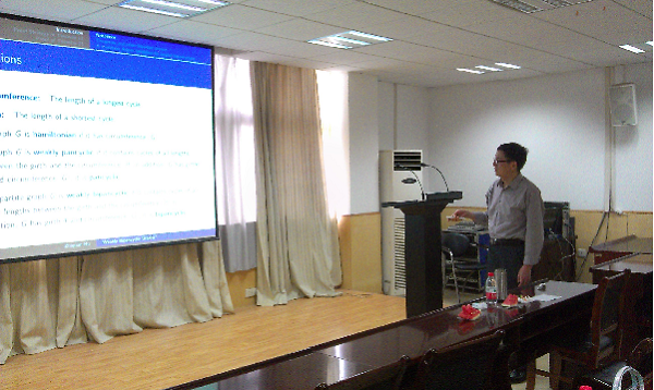 2015年5月20日下午,华中师范大学胡智全教授应邀来访我院,并为我院师生做了题为“Weakly Bipancyclic Graphs”的学术报告。