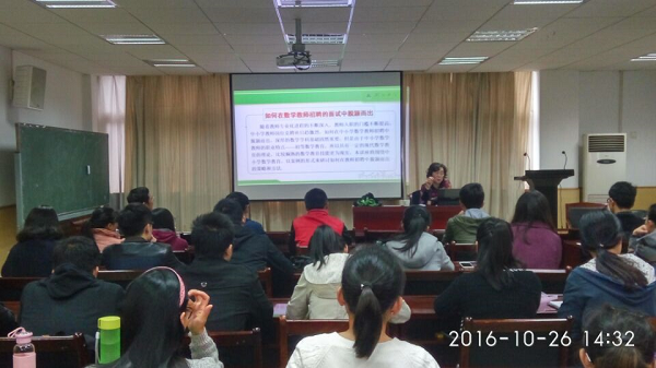 刘老师的报告主要讲解了在当前中小学教师岗位竞争日趋激烈的情况下,如何才能够在教师的招聘中脱颖而出的问题。报告中,刘老师以自己从事多年中学教育的经验,为我们详细讲解了中小学教师在授课时应需注意的细节,并以实际的求职案例,生动形象地介绍了在应聘时能够准确吸引考官注意的策略与方法,引起了在座师生的浓厚兴趣。