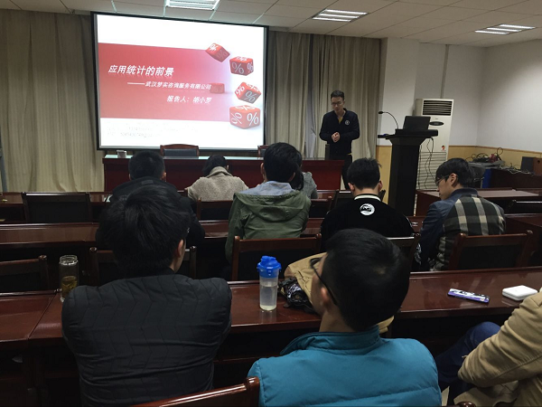 在主持人车晨曦简短的介绍下,在同学们愉悦的欢笑和热烈的掌声中,第一位演讲嘉宾胡小罗慢慢的走上讲台,这次他为大家演讲的主题是“应用统计的前景”。首先,胡小罗根据研究生期间学习和创业经验,简要分析了应用统计专业的就业前景,值得一提的是,胡小罗12年本科毕业留校当过一年辅导员,随后在14年4月成立了武汉梦实咨询服务有限公司,谈及创业初期,胡小罗告诫大家千万不要眼高手低,要学会在简单事情中寻找经验,才能从事更复杂一些的事情。并结合自己的观察为大家介绍了应用统计专业的学生毕业后能从事的工作,当有学生问到平常该怎样学习的时候,胡小罗说到:“现在统计专业就业前景较好,各个行业需要的要求不同,最重要的是了解自己想从事哪一方面的工作,要有一技之长。”