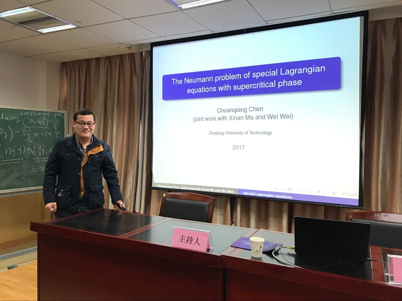 3月16日上午,浙江工业大学理学院陈传强老师应邀来访我院,为学院师生做了题为“The Neumann problem of special Lagrangian equations with supercritical phase”的学术报告。