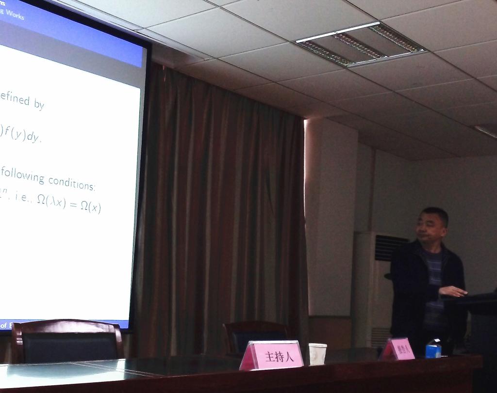 3月18日下午,厦门大学伍火熊教授和新疆大学周疆教授应邀来访我院,分别为学院师生做了题为“Inclusion Relations on Certian Function Spaces”和“Characterization of BMO space via the weak boundeness of Calderon-Zygmund operator”的学术报告。