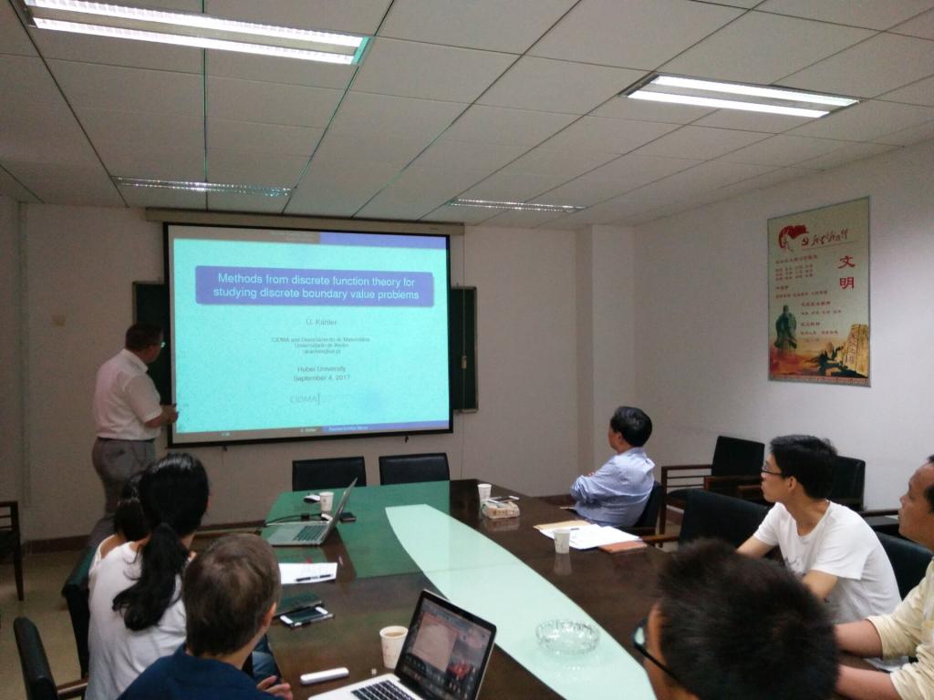 2017年9月4日,葡萄牙阿威罗大学的Paula Cerejeiras和Uwe Kaehler教授应邀来访我院,并为相关方向研究生和教师做了题为《Monogenic curvelets in image processing》、《Methods from discrete function theory for studying discrete boundary value problems》的学术报告。