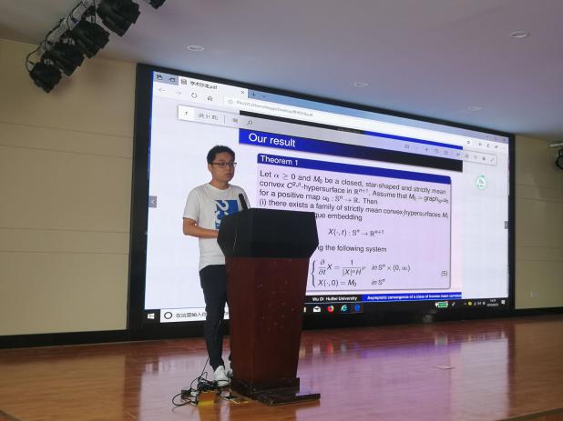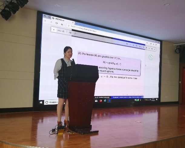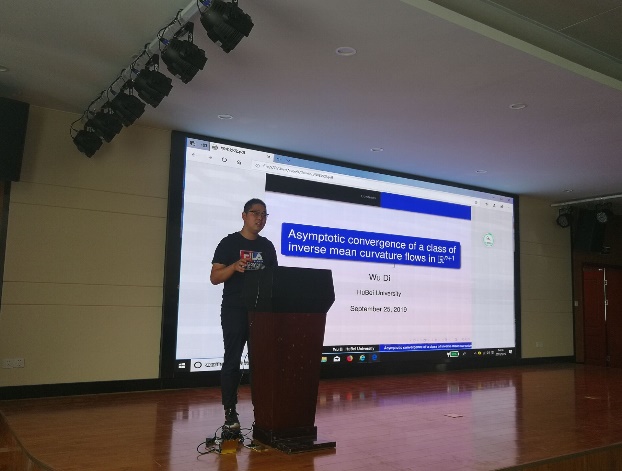 本次活动的主题为“专业学术报告,学习经验分享”。活动开始,主讲人吴迪做了关于《Asymptotic convergence of a class of inverse mean curvature flows in Rn+1》的学术报告,和大家分享该论文的大体框架,同时也和大家分享了学习经验,并热情回答了同学们的提问。
