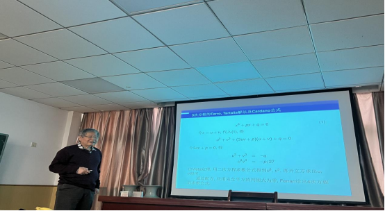3月7日下午,华中科技大学文志雄教授应邀来访我院,在数学与统计学学院201教室为师生做了题为3次方程的Ferro、Tartalia解法及Cargano公式的学术报告。