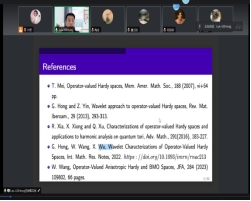 2023年9月25日下午,哈尔滨工业大学洪桂祥教授应邀为我院相关专业的教师与研究生作了题为“A brief introduction to operator-valued Hardy spaces”的线上学术报告。报告中,洪老师给出了算子值Hardy空间的一个相对简短但完备的介绍.Hardy空间理论在非交换分析中是一个比较新的课题,并且遗留了很多具有挑战性的问题.报告结束后,参会师生与洪老师对于报告的内容进行了讨论交流,探讨了一些尚未被研究的新问题。