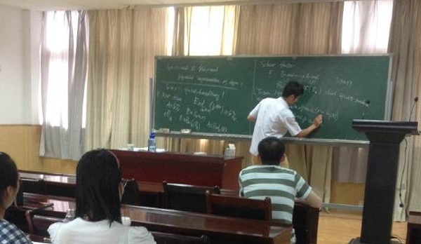 胡老师通过例子,生动地为我们阐述了Schur代数的结构,说明了在Morita等价意义下,Schur代数的块都可由p-core与p-weight来描述,且块的整体维数只与p-weight有关。并进一步地通过范畴化,说明了Schur代数的块A与块B之间是导出等价的当且仅当A与B的整体维数相同,也当且仅当A与B的p-weight相同。