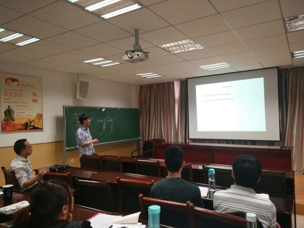 2018年5月10日下午,中科院数学与系统科学研究院陈绍示副研究员应邀来访我院,并为相关专业的教师与研究生做了题为《Creative Telescoping》的学术报告。