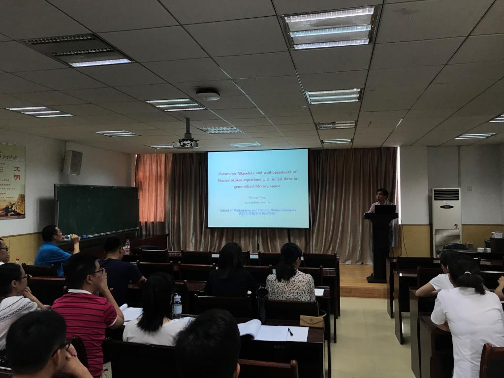 2018年6月14日,武汉大学陈杨奇祥教授应邀来访我院,并在201报告厅为我院师生做了题为《Parameter Wavelets and well-posedness of Navier-Stokes equations with initial data in generalized Morrey space》的学术报告。