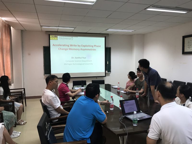 2018年7月4日,密西根大学岳建辉副教授应邀来访我院,并在203会议室为我院师生做了题为《Accelerating Write by Exploiting Phase Change Memory Asymmetries》的学术报告。