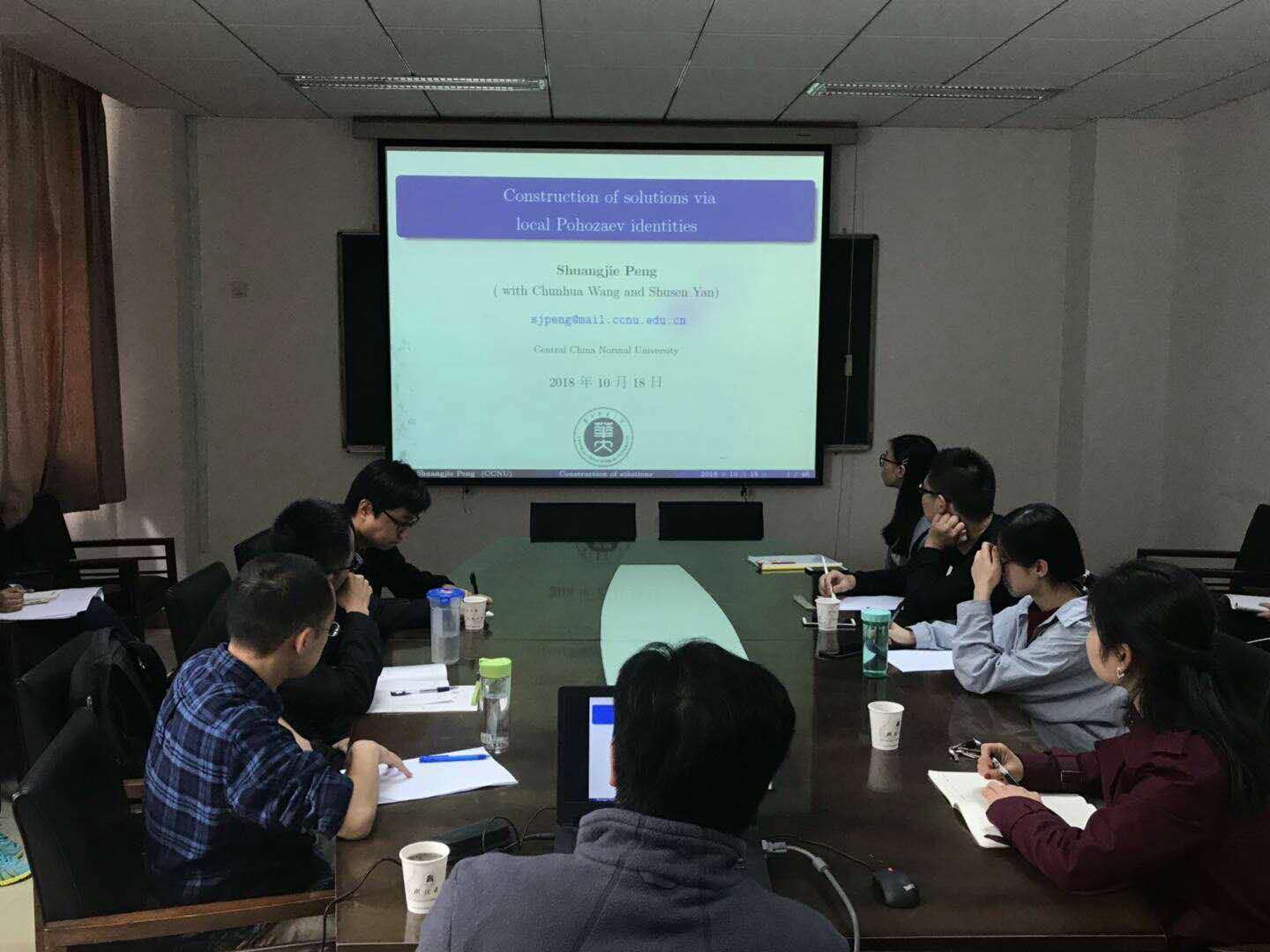 报告中,彭双阶教授介绍了一种基于局部Pohozaev恒等式的新方法。最后,参加报告的师生与彭双阶教授讨论了一些相关专业的问题,开拓了自身眼界。
