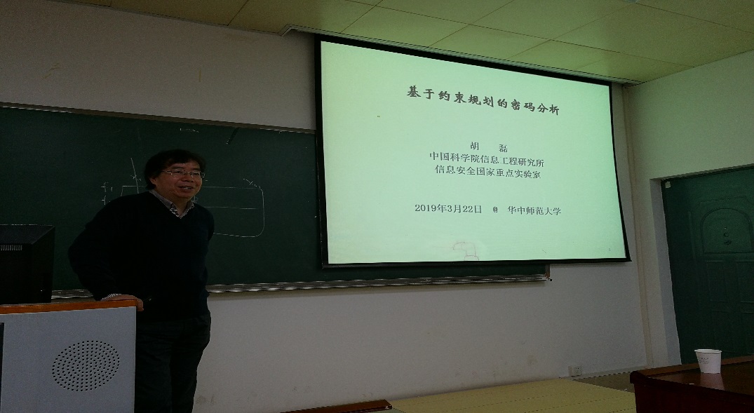 3月23日,首都师范大学葛根年教授、中科院信息工程研究所林东岱研究员、胡磊研究员应邀来访我院,在学院201报告厅为师生分别做了题为“Perfect Splitter Sets”,“一个基于KPK问题的数字签名算法”以及“基于约束规划的密码分析”的学术报告。