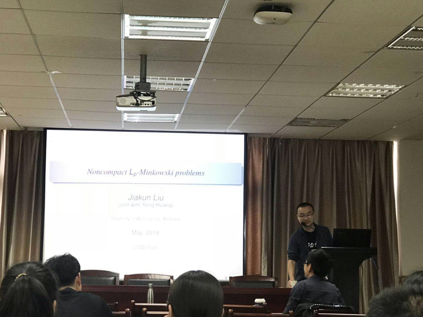 2019年5月13日上午,澳大利亚Wollongong大学刘佳堃应邀来访我院,并为相关专业的教师与研究生做了题为“Noncompact Lp-Minkowski problems”的学术报告。
