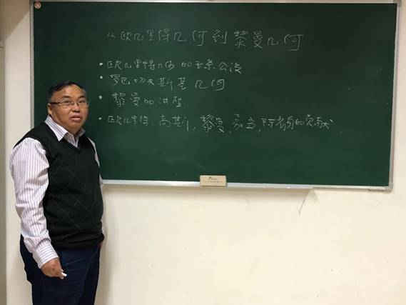南开大学数学学院教授、博士生导师邓少强教授应邀来访我院,做了题为“从欧几里得几何到黎曼几何”的学术报告。