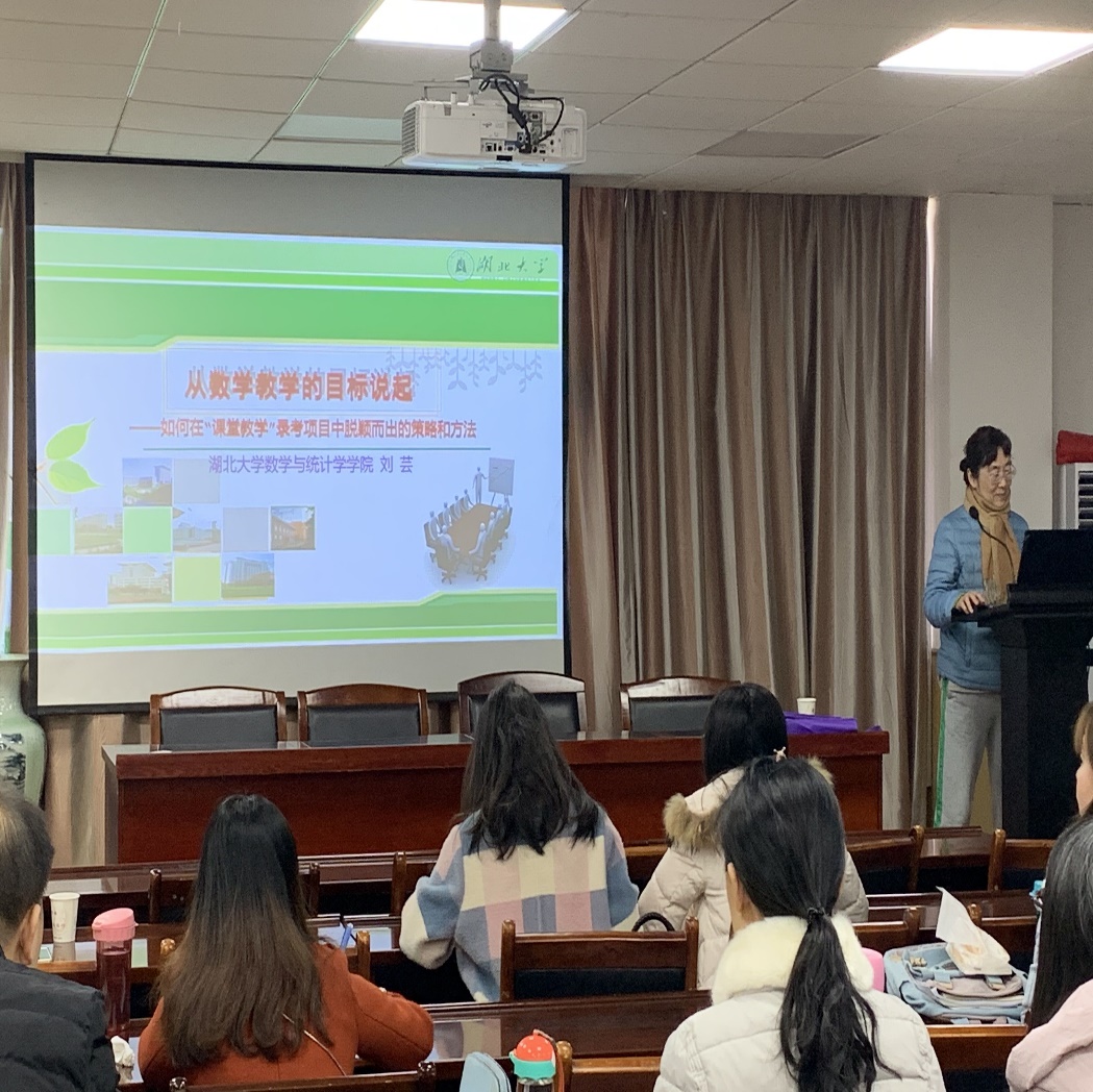 2019年12月6日上午,湖北大学数学与统计学学院刘芸老师应邀在学院201报告厅为我院研究生作了题为《从数学教学的目标说起》的报告。