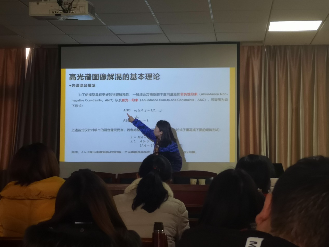 2019年12月9日上午,华中科技大学数学与统计学学院李红教授应邀在学院201报告厅为我院研究生作了题为《基于深度学习的高光谱图像解混》的报告。