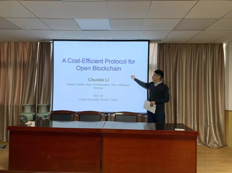 2019年12月26-28日,卑尔根大学李春雷教授应邀来访我院,并在访问期间,分别于12月26日做了题为《A Cost-efficient Protocol for Open Blockchains》的学术报告,12月27日做了题为《Decodable rank-metric codes and their applications in cryptography》的学术报告。