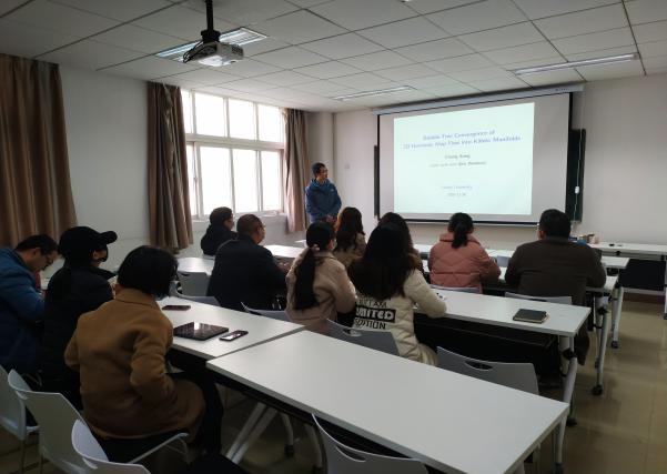 2020年11月30日上午,厦门大学宋翀教授应我院陈立老师邀请,作线下学术报告。报告在海角天涯社区网页入口登录203报告厅举行,由陈立老师主持,来自我院几何团队的教师、研究生10余人参与了报告的听取和讨论。