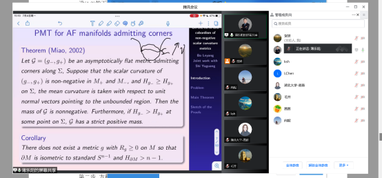 2022年7月4日上午,南京理工大学薄乐阳老师应我院贺妍老师邀请,为几何团队师生作了题为“On the fill-in and cobordism of non-negative scalar curvature metrics”的线上学术报告。