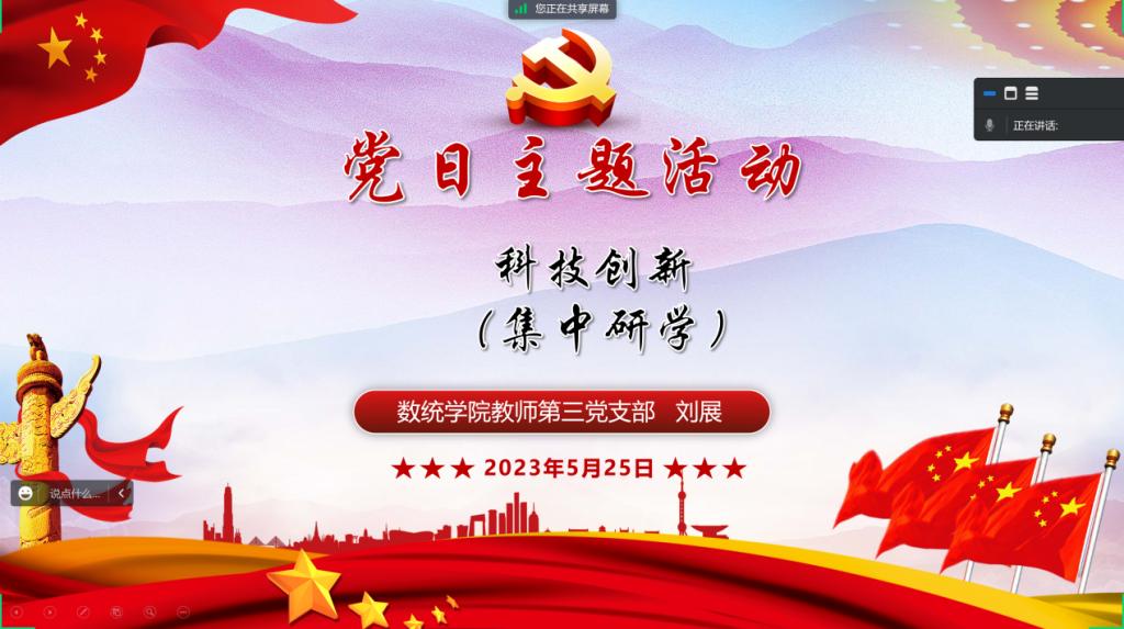 5月25日下午,数学与统计学学院教师第三党支部结合主题教育相关安排,召开“党建引领创新,科技赋能发展”5月份主题党日活动。会上通报了到会情况,全体党员重温入党誓词、交纳党费,并就科技创新进行了专题研学。