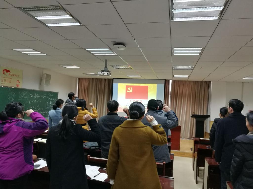 活动开始后,全体教师党员重温入了党誓词,交纳了12月份的党费,并由教师第二支部纪检委员石毅带领大家重温入党誓词并诵读了党章。随后学院全体教师观看了十九大学习的相关视频。