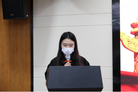 会议第一项,全体起立,奏唱国歌。接着来自2019级应用统计团支部的李雅娟、2020级数理金融团支部的黄宇轩、2019级数学师范团支部的娄雨晴作为学生代表就如何端正入党动机、争取早日入党和此次党课的学习心得依此发言。