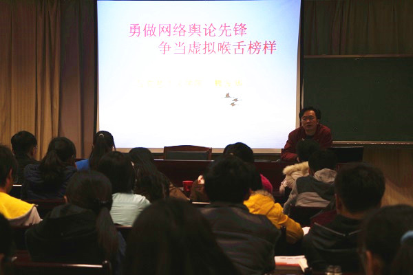 11月21日晚7:00,马克思主义学院副院长熊友华教授以“用做网络舆论先锋,争当虚拟喉舌榜样”为主题,在学院201报告厅为同学们上了一场别开生面的党课。