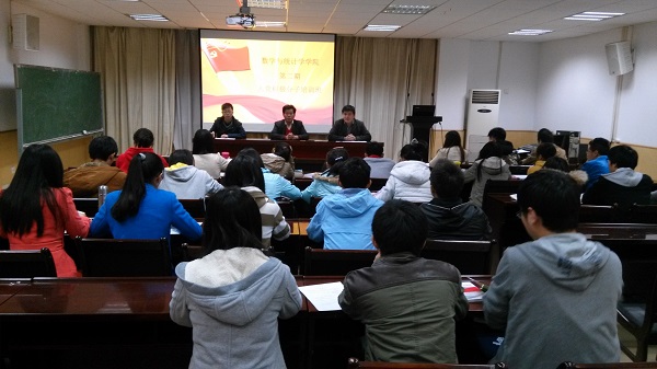 11月17日,数学与统计学学院第二期入党积极分子培训班在院201报告厅开课。学院党委书记游春林、党委副书记陆伟、党委秘书陈冰参加了此次开学典礼。党委副书记陆伟主持会议。