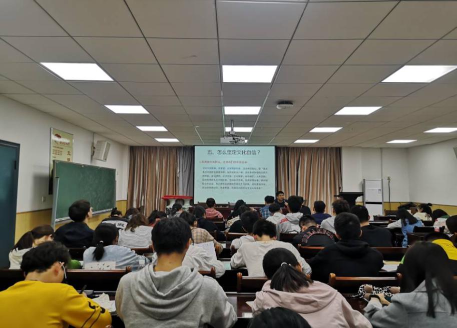 湖北大学数学与统计学学院第八期党的基本理论知识培训班第二次党课学习于2019年11月6日下午18:30在数学与统计学学院201教室进行。此次以“提升文化自觉,坚定道路自信”为主题的党课由生科院辅导员李文老师主讲,凭借其丰富的教师经验和诙谐幽默的讲话风格,他为53名入党积极分子们带来了一场印象深刻的党课。