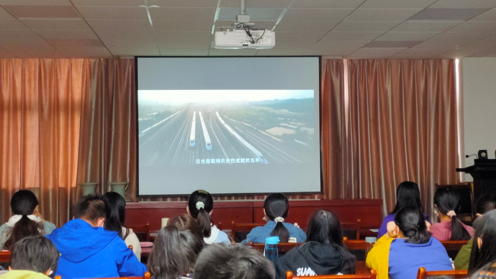 该影片是以习近平新时代中国特色社会主义思想为主引,将党的十八大以来中国的发展成果与前行轨迹,以及十九大报告中提出的“中国特色社会主义进入新时代”重大论述,以纪录片的形式首次呈现在大屏幕上。该片记录下了中国桥、中国路、中国车、中国港、中国网等超级工程的震撼影像以及背后的故事,在彰显国家实力的同时,也体现了国人们不畏艰险、埋头苦干、开拓进取的美好情操,全体学员震撼于中国的雄厚国力,震撼于中国的快速发展,震撼于中国人的艰苦奋斗和聪明才智。
