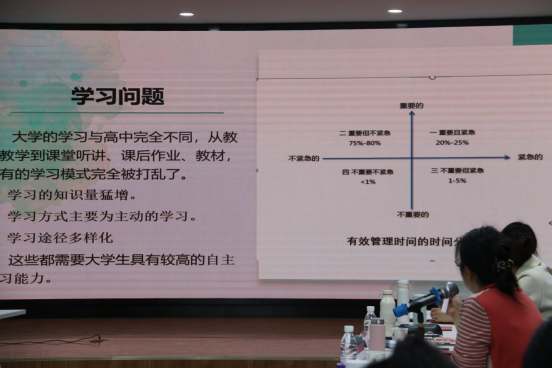 一位学生干部表示“今天,柳老师的授课让我认识到我现在正处于亚健康状态,因为难以平衡学习和工作导致我长期焦虑。接下来,我要尝试像柳老师所讲的,将任务划分等级,分清轻重缓急,有效地管理和运用时间,以此来调节焦虑情绪,努力把自己回升到健康水平。”