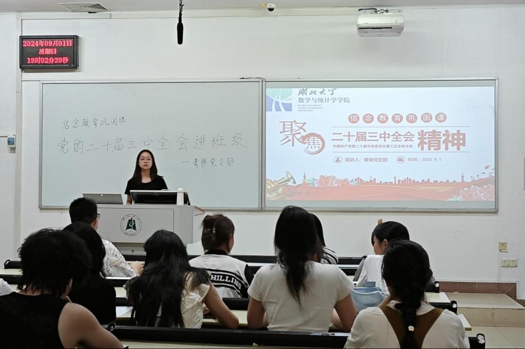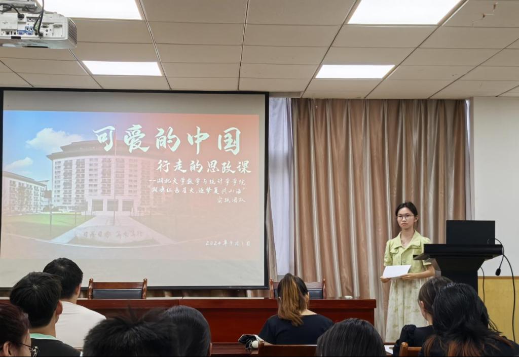 荆楚网(湖北日报网)讯(记者许文秀)“我们团队先后调研了宜昌市三峡大坝水电工程、恩施土家族苗族自治州等地,拍摄系列微团课,挖掘并展示各地在中国式现代化进程中的生动实践,希望以青年视角感知大国脉动,描绘出我们眼中‘可爱的中国’,讲好中国故事,让更多的人更好地理解中国、读懂中国......”9月1日晚,湖北大学数学与统计学学院开学第一课现场,该院青锋党支部成员邓双媛与同学们分享暑期“行走的思政课”中的收获与感悟。