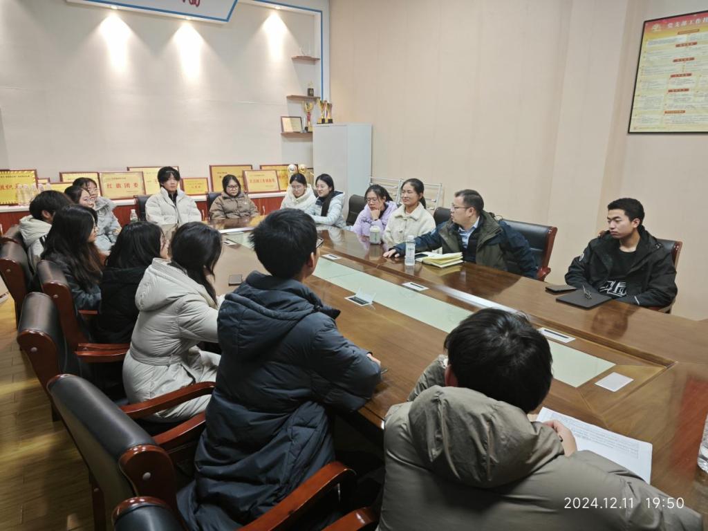 12月11日晚,学院在阳逻校区B312教室举办朋辈交流分享活动,邀请青锋宣讲团优秀成员代表分享了学习经验,并开展学风建设座谈会。学院党委副书记王文锋、辅导员杜强、易志奇,青锋宣讲团成员代表以及2024级数学类新生参与此次活动,会议由易志奇主持。