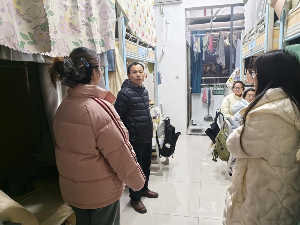 新学期开学第一天,为切实了解学生返校情况和思想动态,2月16日晚,学院党委书记黄江英带领学院领导班子、全体班主任、辅导员等一行深入学生宿舍,开展新学期宿舍走访慰问活动。