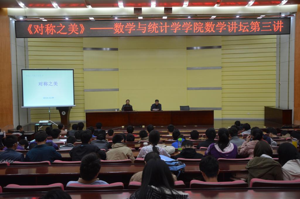 11月6日晚,湖北大学数学与统计学学院数学讲坛第三讲在思睿厅开讲,做客此次数学讲坛的是北京大学数学科学学院张继平教授。他以对称之美为题,为学子们带来一场数学盛宴。