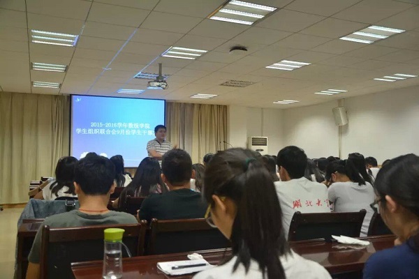 会议开始秘由书部王丽围绕组织宣传工作、组织建设、学生活动和志愿服务等内容对上学年的工作做出总结。学院学工办周杰老师根据历史上著名的“三湾改编”提出自己对学联会内部活动的一些构想及具体事项,并对本学期数学文化月、基层团建月和总结表彰月等相关工作进行部署。陈冰老师则提出就学院学生党员发展的变化和改革进行了明确的讲解和说明。