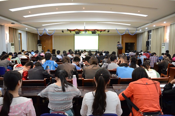 4月19日,我院13级本科生召开年级大会,党委副书记陆伟以学生就业规划为主题,为150多名学生在实习、考研、就业等方面排忧解难。