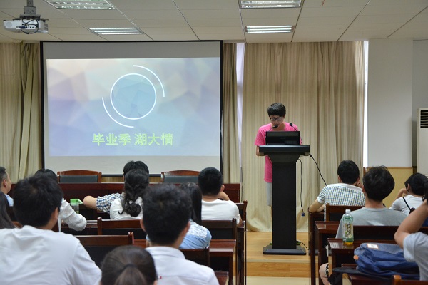 会上,秘书部王逸汇报了学联会五月份的工作情况,总结了学院开展的厨艺大赛、讲课比赛、趣味运动会以及学校开展的田径运动会。学科部吴亚男对即将开展的讲课比赛决赛进行了工作布置与人员分配。之后,学联会四位成员分别进行了无主题演讲。活动部杨浩宇和志愿者协会罗成辉以当前的毕业季为背景,回忆了自己加入学联会一年的经历,表达自己的湖大情、数统情、学联情、室友情以及食堂情。罗成辉说:“学联会是一个大家庭,在这里更多的是鼓励与宽容,很感谢它给了我一个不断犯错但又不断成长的平台。我喜欢学联会,这里有认真的老师,这里有爱心满满的学长学姐,这里有一群热爱为学生服务的小伙伴!”心理健康部高艺宁和应用统计工作室张九星也进行了精彩的演讲。