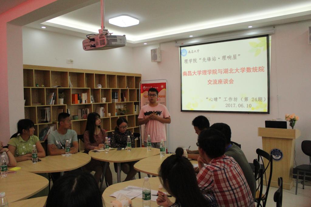 教师交换意见后,双方学生就团建工作、宣传工作、学生工作、学生活动等四个方面展开交流,分开提出自己院校在相关工作方面的亮点与不足,并对对方提出自己的观点和建议,南昌大学理学院学生会主席杨峻岭在谈到活动开展内容时表示从湖北大学海角天涯社区网页入口登录的活动举办中学到许多,并得到了许多启发,对此次座谈会的价值再次提出肯定。