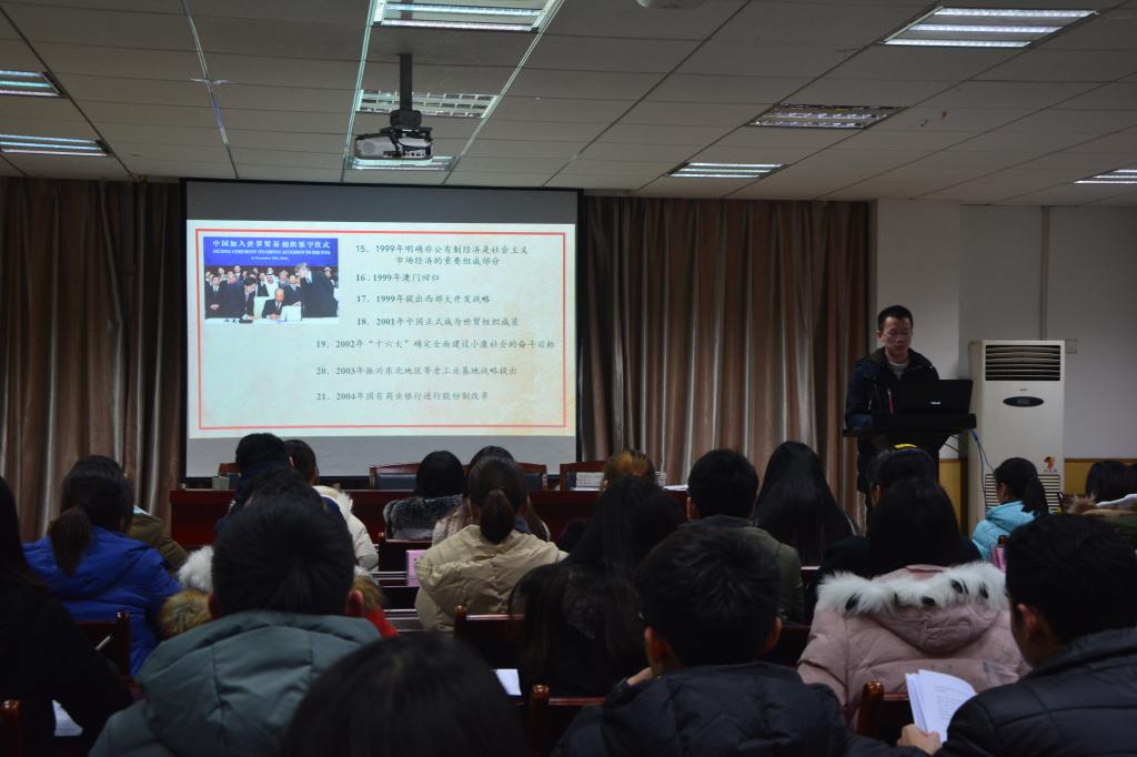 2018年12月11日晚上7点,共青团湖北大学数学与统计学学院团委于201会议室开展以“改革开放铸辉煌,青春飞扬普华章”为主题的团日活动,来自基层团支部及新发展团员代表共48人参加了本次团日活动。