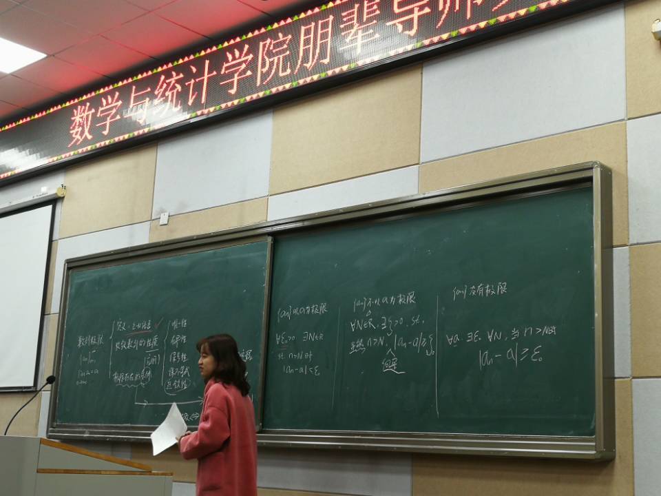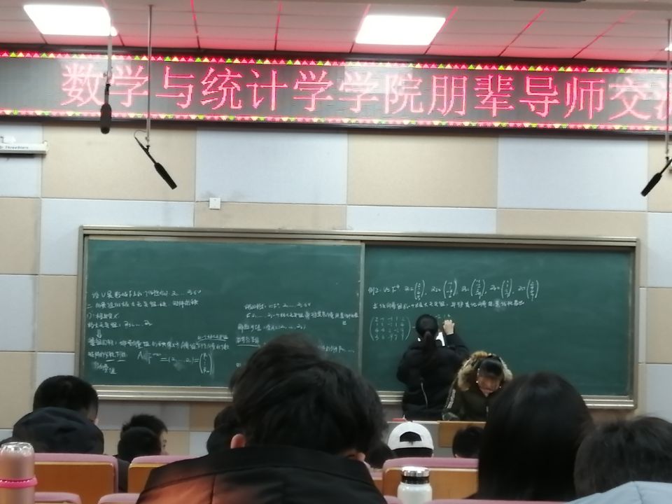 2019年12月14日,为满足学生多样化学业需求,发挥朋辈力量,帮助学生克服学习障碍,掌握学习方法,提高学习能力,同时进一步加强学业学风建设,充分发挥学生在学业辅导工作中的主体性,通识教育学院B200进行了第一次数学与统计学学院朋辈导师交流,为阳逻的同学们讲授了数学分析,高等代数的的相关知识。