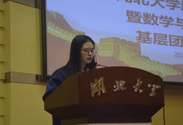 活动伊始,由四位学生代表结合团校知识,以及日常生活工作中的体会和收获发言。首先是数学与统计学院向必俊同学分享学习感受,他主要从三个方面讲述:要学习先进政治思想,树立正确的信念、人生观、世界观和价值观,提高思想道德素养;要努力学习科学文化知识,并将这些知识运用到生活当中,为国家富强、民族振兴奉献自己的力量;摆正心态,真正从小事做起。接下来再分别由新闻传播学院李楠楠同学,数学与统计学学院吴岚昕同学,新闻传播学院刘书颖同学发言,他们分别从团课中所讲的主要内容,自己小书童支教团的亲身经历以及上完团课后的感受来分别讲述。