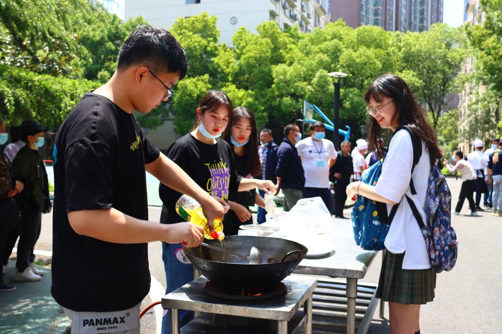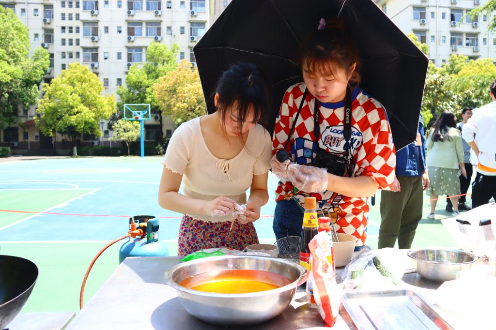 同时,湖北大学后勤集团第十七届“金勺奖”比赛也在同时进行,各位身怀绝技的厨师们各显神通,刀工精致,色彩鲜丽,回味悠长,许多特色菜品一应俱全,让参赛学生们在比赛中领略大师级作品。有学生评委张博感叹道:“今天天气挺热的,真佩服厨师和学生们在大太阳底下完成比赛,还能做出这么棒的作品!”
