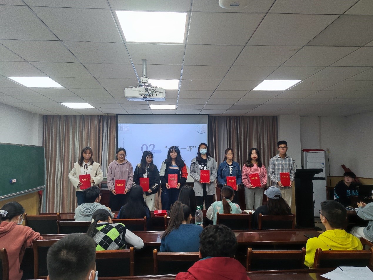 在各部门部长总结本周任务之后,此次会议进行了三项新活动。第一项为感悟分享,通过对“青年大学习”的观看学习,学联会干事温涛,王璐就“明确自我日常任务,落实党团知识学习”的主题进行了感悟分享,深刻认识到学习“青年大学习”的必要性与重要性。第二项为本届首次开展的“一月一评”活动,通过对部门干事九月份任务完成情况的评估,在主席团的商议下,选出本月优秀干事,并进行了现场颁奖。第三项活动为随机演讲,各部门随机抽取人员进行时长三分钟的现场演讲。该活动设定新颖,内容有趣,现场反响热烈。被抽到的同学均顺利完成了此次随机主题演讲。