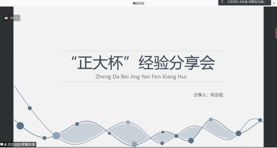 “正大杯”第十二届全国大学生市场调查与分析大赛于2021年10月正式启动后,现在开展项目前期的准备工作,湖北大学数学与统计学学院为了帮助同学们顺利开展项目并且引导学生创新和实践,提高学生的组织、策划、调查实施和数据处理与分析等专业实战能力,培养学生的市场敏锐度和团队协作精神。继上次开展的“正大杯”大赛培训会后,于2022年1月6日晚8点学院组织开展了“正大杯”比赛线上经验交流分享会。出席此次经验交流分享会的有:获得第十一届“正大杯”全国大学生市场调查与分析大赛国家一等奖两支队伍的组长邓念斌和柯琦。