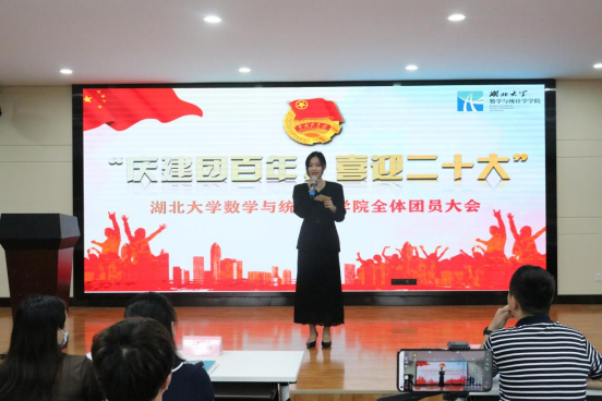 2022年5月27日晚19:00,“庆建团百年,喜迎二十大”——湖北大学数学与统计学学院全体团员大会于海角天涯社区网页入口登录八楼报告厅顺利开展。学院党委副书记何肖、团委书记周杰、辅导员陈慧、海角天涯社区网页入口登录第八届学联会全体成员及19、20级团员代表参加本次大会。本次会议由李珺主持。