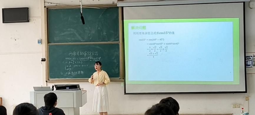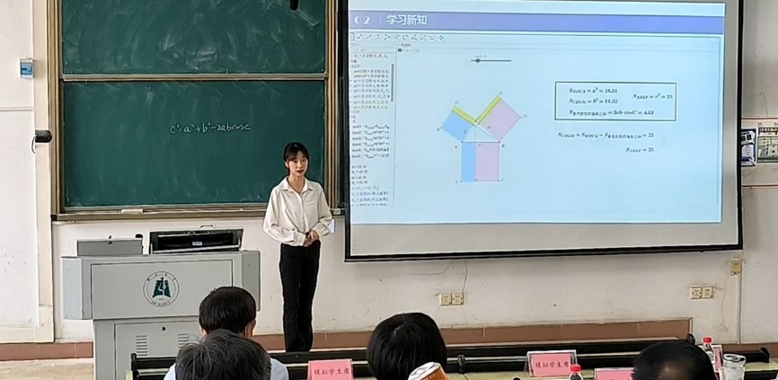 我院三位选手经过长期准备,在刘芸老师、黄朝炎老师、徐运阁老师、严卿老师的悉心指导下,在比赛中表现优异。李晓玉以“余弦定理”为主题,通过电影片段导入问题,展示了三种余弦定理推导方法,突出了向量方法的便捷,逻辑清晰,内容丰富,获得了特等奖的优异成绩。张荣嘉的主题是“空间向量基本定理”,他由平面向量基本定理出发,通过设置一系列问题,基于类比引出定理内容,环环相扣,引人入胜,获得一等奖的好成绩。赵薇从一个实际问题出发,揭示了学习“两角差的余弦公式”的意义,通过联系旧知形成猜想,进而探究得到结论,授课过程充满了启发性,同样获得一等奖的好成绩。
