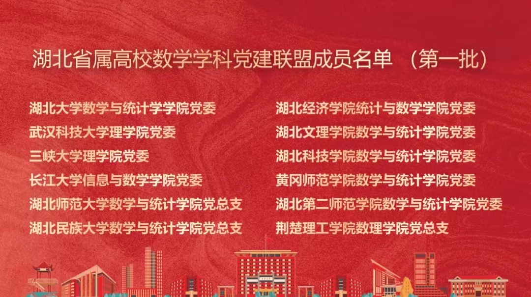 为深入学习贯彻党的二十大精神,主动适应党和国家对高等教育提出的新任务新要求,共谋数学学科发展新思路新举措,由我校发起的湖北省属高校数学学科党建联盟成立大会于12月18日在线上举行。湖北省委教育工委组织处处长乔志强、湖北大学党委副书记侯勇、湖北省属高校数学学科党建联盟第一批成员单位以及其他兄弟高校数学学科师生参加会议。